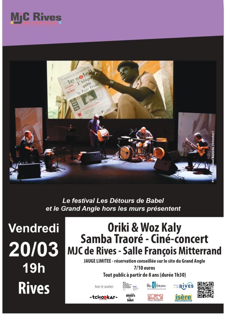 Pour réserver : https://billetterie-grandangle.mapado.com/event/674044-samba-traore-cine-concert